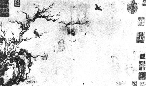 【作品赏析】: 《秋空隼举图》是马和之仅见的一幅花鸟画。 画树木、岩石和水波,都是飘逸流动的线条,即所谓的兰叶描法。生动地表现出江上秋风萧瑟,草木摇落,烟波浩渺和水天寥廓的景色。岸边山石上,有枯木一株,一鹰隼寄宿其上,另一鹰隼展翅高翔于云天之际。 此卷画面很小,却能小中见大,于尺幅之中表现出隼击长空和云水千里之势。如果画家胸中无鹏搏之思、云水之志,是难以画出这样气象宏阔、寄意深远的作品的。 。【作者介绍】: 马和之,钱塘(今浙江杭州)人,绍兴中登进士第。 主要生活在南宋高宗、孝宗时期,官至兵部侍郎。善画人物、佛像和山水,学吴道子笔法,人称“小吴生”。画人物山水用笔飘逸,务去华藻,能自成一家之体。 。  宋 马和之 卷 纸本水墨 纵30厘米 横48.7厘米 藏台北故宫博物院 |