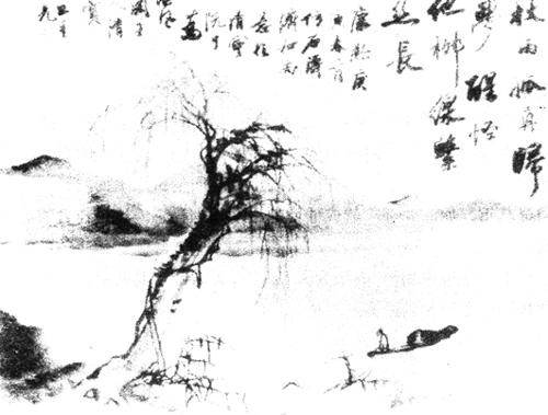 【作品赏析】: 此幅作品作于康熙庚寅春二月(1701),其时作者已届78岁高龄,应是居茅山后所作。 题记中诗写:“秋雨孤舟归梦醒,怪他柳线系丝长。”画面上也正是表达了这两句诗的情意。 整个画面皆用水墨润笔,显得处于秋雨绵绵的环境之中。远处山峦,水气朦胧。 近处岸柳,叶已落尽,每经受场秋雨,就越走向于枯一步。树上还缠两根野藤,更使人感到柳树的厄运。 水面上一叶孤舟,舟头一人不顾细雨淋漓而静坐沉思。是感秋?是怜柳?还是见景触情?做过多年御史的笪重光自然是感触很深的。 不然他晚年也不会离家走上茅山修道。 这幅作品中流露出的孤独伤感之情,反映了他内心的苦闷。这也是在封建社会里必然会发生的悲剧。 在这幅内容简括、主题突出的画幅中,作者那熟练的笔墨功夫,反映了他的绘画修养。 。【作者介绍】: 笪重光(1623-?) 字在辛,号江上外史,自称郁冈扫叶道人。 晚年居茅山学道,改名传光,有时署逸光、逸叟,江苏句容入。顺治九年(1652)中进士,官至御史。为人刚正,敢于直言,权贵们在他面前都颇有所收敛。擅长书法,学苏东坡、米芾一派,与当时的姜宸英、汪士禛、何焯被称为书法四大家。 兼能绘山水、兰竹,与王翚、恽寿平等名家往来密切。作画追求高雅的意境和笔墨情趣。 。  清 笪重光 轴 纸本水墨 纵58厘米 横72厘米 藏辽宁博物馆 |