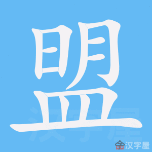 méng ❶动古代指诸侯立誓缔约;现在指国家或政治集团之间联合起来。盟主|盟约|盟国 →❷动发誓;宣誓。对天盟誓 →❸动结拜。盟兄|盟弟 →❹名依据一定的信约结成的联合体或组织。同盟|联盟|加盟 →❺名古代我国北方蒙古等民族几个部落集结为一个盟;现指内蒙古自治区中相当于地区一级的管理区域。 ○❻名姓。用法说明统读 méng,不读 míng。