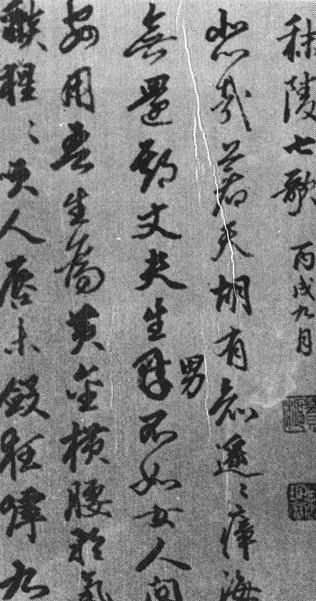 释义 | 秣陵七歌册 【简介】: 明·丰坊书。纸本。行书。计十四开,凡一百三十三行,每行字数不一,共一千二百十九字。每幅29.3×31.7cm。台北故宫博物院藏。《石渠宝笈》著录,刊于台湾《故宫历代法书全集》(二十),载入台湾《故宫书画录》卷三。 【赏析】: 丰坊这首《秣陵七歌》,笔力沉雄,非一般人所能及。他不但是位书法家,还是位书法理论家,一位多产作家。 丰坊这件作品,用笔俊迈,沉著老辣,颇具米芾之风。究其渊源,却出入二王。 不过,米芾强调八面用锋而丰坊却弗能,致使他的作品一方面表现出过人的笔力,而同时也给人以风韵稍嫌不足之感。这大槪与他极力主张单纯运腕而绝对排斥运指有关。 丰坊这件作品所用之墨过浓而一开始蘸墨不多,致使“胡有”二字之前显得似有些燥,在此之后因饱蘸墨汁才得以润燥有致。这就是人们常说的“墨酣笔畅”的道理。 一般而言,书写之初,往往饱蘸浓墨,所以线条饱满,然后逐渐变燥,按这种规律来分析,这幅作品给人的印象却好像是自左向右书写的,有悖于“常规”,其原因就是书写之初墨浓而量少。 丰坊不囿于古人,其书法造诣颇深,可惜,除了刊行的某些书籍之外,我们见到的他的墨迹却不多。究其原因,大槪是因爲他后来作过不少僞书,人们因恶其人而废其书所致。丰坊家境中道衰落,作此下策,但作僞书不仅没能改变他的命运,反而大大影响了他在书界的地位,致使我们失去了许多欣赏他本人墨迹的机会。笔者无意爲丰坊作僞书开脱,但这一事实却也从反面说明,丰坊曾经临过许多帖,而且功夫是比较深的—当读者了解到丰坊虽汗牛充栋、满腹经纶而仕途很不得志,穷困潦倒,最后以致贫困而死这样一些背景的时候,又会作何感想呢? |