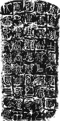 【简介】: 春秋时期秦国所作。甘肃天水出土。搨本。大篆。铭文十行,行五字,八、十行有重文各六字。盖文五行,行十字。盖缘有刻划文一行九字。此图片爲盖铭。郭沫若《两周金文辞大系图录考释》、文物出版社《商周靑铜器铭文选》(二)收入。