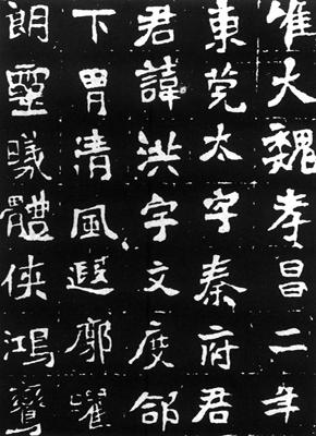 【简介】: 全称《东莞太守秦府君墓誌》。北魏孝昌二年(526)十月刻。正书。二十一行,行二十一字。43.2×43.2cm。盖正书“魏故东莞太守秦府君墓誌”一行,十一字。一九二六年河南洛阳小寨沟出土。曾归三原于右任。现藏陕西西安碑林。赵万里辑入《汉魏南北朝墓誌集释》。 【赏析】:  《秦洪墓誌》茂密、酣畅,结体用笔自成家数,有极强的书法个性。在北魏墓誌中别具一格。 该誌书法结体取隷书遗意,势呈扁方而灵活多姿,富奇拙之趣,时出人意料。用笔遒厚丰畅,不拘常法,势态极爲多变。其书粗壮处不显臃肿;端庄严谨,意味深长;雄健峭拔处随意弄险,忽又归于平正;不用长画参差逞其势,不以短画紧缩显其促。由于书者笔力劲厚,对汉字结构驾驭纯熟。挥运之时意度松活不执成见,所以无施不可,左右逢源,熟而能生,自成天然之章。 该誌虽有细线界格,但横列纵行,大小参差,高低起伏,方扁互补,妍质相融。末行六字,点画疏蕩、气势开张,情态尤爲自由奔放,但仍和通篇呵成一气,并不显得隔膜。书者驾驭全局竭尽变化的手段,令人叹服。 学该誌书法有相当难度。由于它用笔的规範较少,加之结体多奇变,不依故常,如把握不住该誌整体的艺术气质和构成的机括,极易流爲矫揉作态,此不可以不知。 |