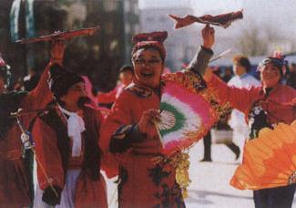 秧歌起源于农民插秧种田的劳动生活,它又和古代祭祀农神祈求丰收,祈福禳灾时所唱的颂歌、禳歌有关,并在发展过程中不断吸收农歌、菱歌(民歌的一种形式)、民间武术、杂技以及戏曲的技艺与形式,从而由一般的演唱秧歌发展成为民间歌舞。 至清代,“秧歌”已在全国各地广泛流传。 秧歌舞,又称扭秧歌,历史悠久,是中国最具代表性的民间舞蹈形式之一,也是一种独具一格的广场集体歌舞艺术。秧歌舞者都具有自己的风格特色,一般扮成历史故事、神话传说和现实生活中的人物边舞边走,随著鼓声节奏,善于变换各种队形,再加上舞姿丰富多彩,深受广大观众的欢迎。 现在各地的秧歌一般以秧歌舞队为主要形态,既有集体舞,也有双人舞、三人舞等多种表演形式,根据角色的需要手持相应的手绢、伞、棒、鼓、钱鞭等道具,在锣鼓、唢呐等吹打乐器的伴奏下尽情舞蹈。 扭秧歌者不分男女老少,著上盛装,摆动彩扇,几十人或数百人排成队列,在锣鼓唢呐的伴奏下,在大街小巷或广场尽情扭跳。其场面宏大,气氛热烈。 秧歌舞表演起来,生动活泼,每逢重大节日,例如新年等,城乡都组织秧歌队,拜年问好,互相祝福、娱乐。另外,不同的村邻之间还会扭起秧歌互相访拜,比歌赛舞。  东北大秧歌 |