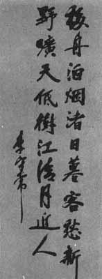 释义 | 移舟泊烟渚诗轴 【简介】: 近代·李大钊书。纸本。行书。凡三行,共二十三字。刊于《民国时期书法》(上)。 【赏析】: 从风格上看,李大钊这幅行书很有苏轼行楷的意味,浓墨流利,丰润圆厚,柔而有刚,于和蔼可亲之中,又具有一派咤叱风云的豪放雄强气魄。 从笔墨上看,笔饱墨满,写得从容不迫,规範而传统的用笔与结构,有功力,也有才情。落款“李守常”三字,颇有逸笔草草的连贯之意,与正文的稳定沉默形成较鲜明的对比,这是用激情与高潮结尾。最后“常”字长长的拖笔,更使我们体味到从徐徐而起到急速运毫、一挥而就的书写全过程,很有余音袅袅的回味。 |