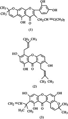 释义 | 穿破石 【名称出处】:《生草药性备要》 【概况】: 基源 为桑科柘属植物构棘和柘树的根皮。 原植物 构棘Mac[ura cochinchinensis(Lour.)Corner和柘树Maclura tricuspidata(Carr.)Bur 余项参见“奴柘刺”和“柘木”条。 【生药】: 采集 全年可采挖根,削去支根,晒干。 药材产于广东、广西、福建等地。 鉴别 性状 根圆柱形,粗细不一,粗者可至5~6cm;栓皮橙黄色或橙红色,有细密横皱纹,菲薄如纸,极易脱落;栓皮脱落后表面灰黄色,并有棕黄色斑块。 质坚硬。横切面皮部薄,纤维性,木部发达,黄色,满布细小密集的导管;有的有小的髓。 气微,味淡。以皮色黄、根条匀者为佳。 显微 根横切面:木栓层为10余列扁平细胞,橙黄色。韧皮部外端石细胞成群散列,长条形、椭圆形或类圆形,直径30~50μm;有多数纤维束,草酸钙方晶随处散在。形成层成环。木质部中木纤维数十成群。 木射线宽2~3列细胞,有纹孔。(图见《中药志》.第2册.第2版.473页.图349) 加工炮制 取原药材,除去杂质,洗净,润透,斜切薄片,晒干。 贮藏 置干燥处。 。【化学】: 主要活性成分为黄酮和 黄酮类有:山柰酚、二氢山柰酚、槲皮素、花旗松素(Taxifolin)、杨树甙(Populnin)、香橙素(Aromadendrin)、桑色素(Morin)、二氢桑色素、华报春甙(香橙素-7-O-葡萄糖甙,Sinensin)[1]、杨梅树皮素(Myricetin)[2]、柘树异黄酮A(CudraisoflavoneA)[3]、柘树黄烷酮A(Cudraflavanone A)[45]、槲皮黄甙(Quercimeritrin)、环木波罗辛(Cyclo artocarpesin)[5]、柘树黄酮A(Cudraflavone A)、柘树黄酮B(Cudraflavone B)(1)[6]、柘树黄酮C(Cudraflavone C)、柘树黄酮D(Cudraflavone D)[7]; 附 茎中含胡萝卜甙、β-谷甾醇、木波罗辛(Artocarpesin)、去甲木波罗亭(Norartocarpetin)、5-O-甲基染料木素(5-O-Megenistein)[13]。 参考文献 [1] 新华本草纲要.第2册.上海科学技术出版社,1991:22 [2] 新华本草纲要.第2册.上海科学技术出版社,1991:23 [3] Phytochemistry 1988;27(3):951 [4] CA 1984;101:51687r [5] Planta Med 1985;51(3):190 [6] Planta Med1984;50(2):161 [7] CA 1990;113:208395s [8] Planta Med1984;50(3):218 [9] CA 1983;98:122824r [10] Planta Med1990;56(4):399 [11] Planta Med 1990;56(5):478 [12] Phytochemistry 1989;28(10):2823 [13] CA 1989;111:130749x。 【药性】: 性味 淡、微苦,凉。 ❶ 《生草药性备要》:“甜,平。” 功效 祛风利湿、活血通经。 主治 风湿关节疼痛,黄疸,淋浊,蛊胀,闭经,劳伤咳血,跌打损伤,疔疮痈肿。 ❶ 姚可成《食物本草》:“治疮疡疥癣。” 用法用量 内服:煎汤,6~12g(鲜品30~60g);或浸酒。外用:捣敷。 使用注意 《南宁市药物志》:“孕妇忌用。” 。【临床应用】: 配伍应用 ❶ 配蒲公英、板蓝根、垂盆草等,治疗肝炎。 ❷ 配石见穿、八月扎等,治疗肝气郁结,瘀血凝滞的食管癌、贲门癌、胃癌等,症见胸腹疼痛、吞咽困难、面色黧黑、形体消瘦等。 ❹ 配露蜂房、僵蚕、紫草根等,治疗子宫颈癌、卵巢癌。 方选和验方 ❶ 铁浆酒(《圣惠方》)治耳久聋鸣,或有汁出,皆由肾虚,致多年不瘥:故铁15kg(烧令赤,以水6000ml,渍铁3宿,澄清),菖蒲3.3kg(切,以水12000ml,煮取6000ml,去滓,澄清),柘根15kg(以水12000ml,煮取6000ml,去滓,澄清)。 上药合成18000ml,用米120kg,并曲900g,酿如常法,候酒熟即开,用磁石15kg,捣罗为末,纳酒中,渍3宿。日夜恒饮之,取醉为度,候听闻人语乃止。 ❷ 《全国名老中医验方选集》:“治肝炎,湿热壅结型:穿破石30g,岗捻根30g,蒲公英30g,板蓝根15g,垂盆草30g,六月雪30g,平地木30g,婆婆针15g。水煎服。 ” 若压成片剂,每片0.5g,每次4~6片,每日3次。” ” ❼ 破石合剂(浙江中医学院学报 1983;(3))治疗已全身扩散转移的晚期癌症患者:合剂由穿破石、三棱、马鞭草组成。中医辨证对瘀血型、肝郁证、瘀毒型、痰湿型疗效较好,而脾虚型、气血亏损型较差。 未发现明显毒性反应,使用安全。 轻症慢性肝炎日服1次,均以30天为1疗程。” 单方应用 ❶ 《浙江民间常用草药》:“治体虚白带:柘树根30g,水煎服。” ” ” |