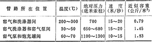石灰窑窑气在各段管路中采用表4-89所列指标。