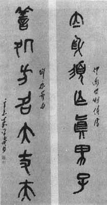 释义 | 立身善处七言联 【简介】: 近代·刘咸炘书于一九三一年。纸本。篆书。凡上下联正文十四字款十六字。每联162×37cm。成都市西城区文化馆藏。刊于《民国时期书法》(下)。 【赏析】: 此联纯以大篆笔法出之。墨酣笔畅,遒劲老拙,每笔皆有余势;又取方势,血脉流通,骨肉健美,旣有先秦浑厚,又有两汉眞朴。再看结体章法,结字虽本小篆,但不像一般小篆写的过长和大小一律,而是随形结字,当长则长、当方则方、当扁则扁,疏密相间,长短参差,形成适度的节奏变化,和谐统一,具有较好的视觉效果。宥斋在《弄翰余瀋》中说:“余论书务守普通之标凖,不敢徇好古尙奇之偏见。于笔固不喜枯瘦,而亦不取涨滞。于势固不喜呆板,而亦不取散漫。盖变化而统一,乃一切艺术之原则。书比于人,骨肉固以匀称爲美也。”他的书法完全实践了他对书法美的见解。字如其人,“和易不拘而谦衷自牧”。 宥斋是学者、是敎授,虽不以书法名家,但他的书法和书法理论却在许多号称书法家和书法理论家的人之上。 |