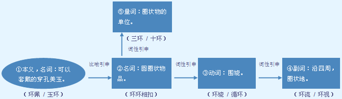 huán ❶名中间有大孔的圆形玉器。玉环|佩环 →❷名泛指圆圈形的东西。耳环|花环|门环 ⇒❸动围绕。环太平洋地区|环球旅行|环城地铁|环绕|环行 ❹名 四周;周围。环顾|环视|环境 ⇒❺名环节❷。调查研究是解决问题的重要一环|工作要一环扣一环地做。 ⇒❻量用于记录射中环靶的成绩。3枪打了29环|第一箭就射了10环。 ○❼名姓。