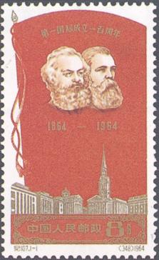释义 | 第一国际成立一百周年 发行日期:1964年9月28日 齿孔度数: 印刷版别:影写版 图幅:27.5×48 全张枚数:40(10×4) 设计者:钟灵、孙传哲 印刷:北京邮票厂 (1)8分 马克思和恩格斯 500万枚 1枚全 |