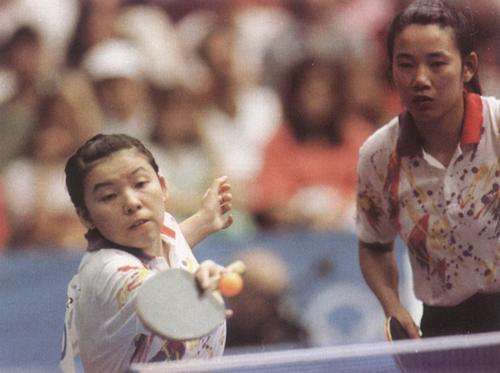 1992年在第二十五届奥运会上,中国在男女跳水比赛中占有绝对优势,夺得4枚金牌中的3枚。 来自湖北年仅14岁的女子跳台跳水运动员伏明霞和有“世界跳水女皇”之称的高敏各得一金;年仅16岁的男子跳台跳水小将孙淑伟,以677.31分的总成绩夺冠。女子游泳比赛开始后,中国队捷报频传。庄泳在100米自由泳中,一路领先,终于为中国队夺得了第一枚奥运会游泳金牌;接著,钱红在100米蝶泳、林莉在200米个人混合泳、杨文意在50米自由泳中摘取桂冠。 在双向飞碟中,中国女选手张山战胜所有男选手获冠军。 在乒乓球比赛中,邓亚萍在获得女子单打冠军后,又与队友乔红合作夺得女子双打冠军,成为中国队在本届奥运会中唯一夺得两枚金牌的运动员;吕林和王涛苦战5局终于夺得乒乓球男子双打冠军。在体操比赛中,中国选手李小双在自由体操比赛中以团身空翻三周的高难动作获得冠军;年仅15岁的陆莉在高低杠比赛中得到本届体操赛的第一个满分并获这个项目的冠军。  1992年7月25日至8月9日,第二十五届奥运会在西班牙巴塞罗那举行。中国队获金牌16枚,银牌22枚,铜牌16枚,金牌总数列第4位。中国乒乓球运动员邓亚萍、乔红(右)在此届奥运会上。 |