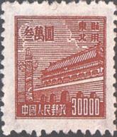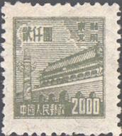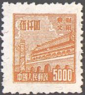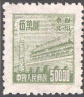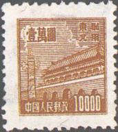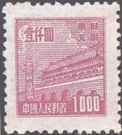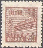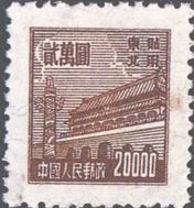 发行日期:1950~1951年 齿孔度数:10、 、11 印刷版别:胶版 图幅:18×20 全张枚数:100(10×10);(4)有80(10×8);(11)有70(10×7) 币制:东北币              (1)250元 天安门 (2)500元 天安门 (3)1000元 天安门 (4)2000元 天安门 (5)2500元 天安门 (6)5000元 天安门 (7)10000元 天安门 (8)12500元 天安门 (9)20000元 天安门 (10)50000元 天安门 (11)5000元 天安门 (12)30000元 天安门(13)100000元 天安门 (1)-(13) 13枚全 注:(1)-(10)有水印,邮电部东北邮电管理局发行。(11)-(13)邮电部东北邮电总分局发行。“东北贴用”4字为宽距。 |