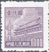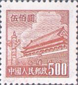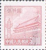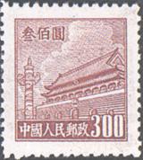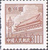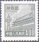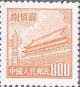 释义 | 第四版天安门图案 发行日期:1950年12月22日起 齿孔度数: 印刷版别:胶版 图幅:18×20 全张枚数:200(20×10) 设计者:孙传哲 印刷:华东税务管理局印刷厂 (1)100元 天安门(1951年6月18日) (2)200元 天安门 (3)300元 天安门 (4)400元 天安门(1951年6月18日) (5)500元 天安门 (6)800元 天安门 (7)1000元 天安门(1951年6月18日) (8)2000元 天安门 (9)3000元 天安门(1951年6月18日) (10)5000元 天安门 (1)-(10) 10枚全 |