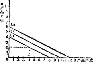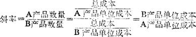 以图线表示的一定量成本同时用于两种投入的各种可能的抉择。 也可以表述为用图线表示的一定量资金购买两种物资的各种可能的选择,称为等值线。例如:  图中有L1、L2、L3三条等成本线,在生产A、B产品的单台成本分别为6,000元和3,000元时,三条线分别表示总成本24,000元、30,000元和36,000元。以L1而言,表示总成本支出24,000元用于生产A、B产品的各种可行选择:如生产A产品4台,则不能生产B产品(6,000×4+3,000×0=24,000);如生产B产品8台,则不能生产A产品(3,000×8+6,000×0=24,000);如生产A产品2台,则生产B产品4台(6,000×2+3,000×4=24.000)。L1线上任一点的成本都是24,000元,等成本线亦由此得名。 等成本线在纵横轴上的截距之比即斜率,为两种产品单位成本之比,公式如下: