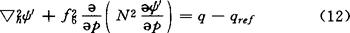 如果位温在下边界不是均一的,可通过在(12)式右端增加一个强迫项的办法,保留均一的边界条件(13)。 (12)和(13)式表示在地转平衡下的可逆性,这是相对于准地转理论中假设的参考态,在这种情形下,静力稳定度是水平均一的,f可度,但在运动的水平尺度上其变化与f0相比是小的。因为这里没有(4)式和(5)式那样的轴对称、稳定运动之类的限制,故可应用于一般的随时间变化的气流。 由q通过(12)和(13)式确定了Ψ,则位势、位温和水平运动场可由(10)、(11)式和地转关系确定,垂直运动可由绝热的热力学方程或准地转ω方程算出。 半地转理论是在保持等压(或等高)坐标下,对准地转理论的改进。方法是:采用地转动量近似(Eliassen,1948),改进对位涡、位温和动量进行平流的风速的平衡条件;通过准Lagrangian坐标变换减小水平不均一性(Hoskins,1975)。这样就使得半地转理论对于可逆性原理的表达在用于水平不均一性很大的问题(如锋生、大振幅的对流层顶变形等过程),比准地转理论有高得多的精度。 Salmon(1985)把半地转理论推广到f可变的情况,并采用等熵坐标形式,其结果可用于定量地讨论位涡距平(或地面θ距平)引起的场,同时证明了第2节指出的4个定性特征。 摩擦和非绝热过程对引起的切断气旋和阻塞高压的大振幅IPV距平的维持和耗散至关重要。 在等熵坐标下,位涡的变化率方程为