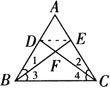 例 如图所示在△ABC中,AB=AC,AD=AE,CD和BE相交于F.