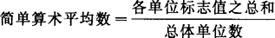 式中:代表简单算术平均数;x代表各单位标志数值;n代表总体单位数;∑代表总和符号。