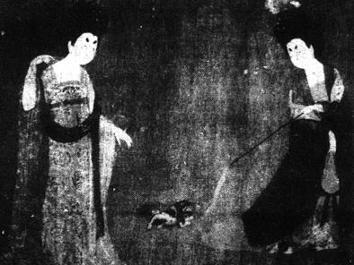 释义 | 簪花仕女图 【作品赏析】: 卷中描绘一群服装华丽的贵族妇女在庭园里闲步、赏花。 图卷左起一位身披紫色纱衫的贵妇,右手轻拢纱衫,左手执一拂尘,侧身转首,逗弄著一只摇尾吐舌扑跳著的小狗。另一贵妇,肩披白色轻纱,身著印有大团花图案的罗裙,右手用纤细的手指挑起纱衫,左手从纱袖中伸出,似在招呼身边的小狗,同戏犬贵妇呼应。接著是另一贵妇,两眼凝视著手里的小花,好似正在沉思。她的身后站著个执长柄团扇的侍女,低眉垂眼,神情默然,似乎并未注意周围的事情。假山石前一株盛开的玉兰花,一贵妇立在花旁,手里捏著扑到的蝴蝶,上身微微后倾,回头注视著从远处跑来的小狗和白鹤。 图中所绘的妇女形象,体态丰硕、肌肤肥厚,而用笔和线条却是细劲有神、流动多姿。设色浓丽,较好地表现了贵族妇女的细腻柔嫩以及高级丝织物的纹饰。此图形象的塑造和表现手法上的特点,是周昉贵族妇女人物画风格的体现。 他的风格特征被画史称为:“初效张萱画,后则小异,颇极风姿”;“衣裳劲简,彩色柔丽”(《历代名画记》),“作仕女多为浓丽丰肥之态,盖其所见然也。 ”(《图绘宝鉴》)。。 唐 周昉 卷 绢本设色 纵46厘米 横180厘米 藏辽宁省博物馆 |