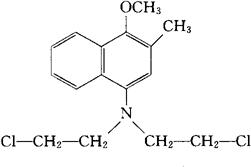 释义 | 米托氯明 C16H19Cl2NO=312.24 CAS-17692-54-5 N,N-双(2-氯乙基)-4-甲氧-3-甲基-1-萘胺。 N,N-bis(2-Chloroethyl)-4-methoxy-3-methyl-1-naphthylamine. 抗肿瘤药,免疫抑制药。 Mitoclomine,NSC 114575,WBA 7707. INN,BAN,USAN. |