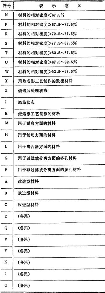 表2.1-116 粉末冶金材料牌号的表示方法(摘自GB 4309-84)