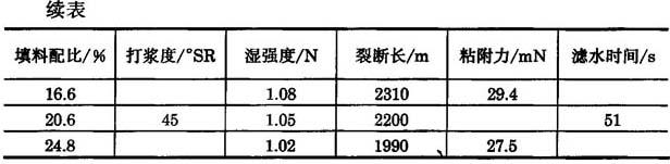 填料增加粘附力下降对抄造有利,湿强度下降对抄造不利。