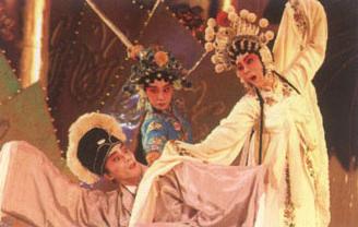粤剧又称广东大戏,是揉合唱做念打、乐师配乐、戏台服饰、抽象形体等等的表演艺术。 粤剧词曲比较通俗,许多生动、活泼的方言口语入戏,特别在“说白”当中运用得很传神。粤剧广泛吸收广东音乐、广绣、牙雕、陶瓷、灰塑等地方艺术形式,充分体现了广府民系群落的地域文化传统,辐射范围遍及全球各地,在世界华人中具有极强的文化凝聚力。 在音乐方面,粤剧吸收了广东民间音乐素材和表现手法,更好地为剧情服务。粤剧的一些曲牌就是来自广东音乐名曲。 早期粤剧使用的乐器只有二弦、提琴、月琴、箫笛、三弦和锣钹鼓板,声调简单。进入成熟期以后,粤剧所使用的乐器达40余种之多,甚至接纳了多种西洋乐器,如萨克斯管、小提琴等,使音乐效果更臻完善。 这在当时的戏剧界是少见的,显示出岭南戏剧勇于革新的精神。 粤剧的行当为文武生、小生、正印花旦、二帮花旦、丑生、武生六类。 粤剧表演带有质朴粗犷的特色,有一些独门绝技。其武打以南派武功为基础,靶子、手桥、少林拳及高难度的椅子功和高台功都十分出色。 粤剧化妆简练,色彩浓艳,服装多采用广绣,精美华丽,富有浓郁的地方特色。  粤剧《白蛇传》 |