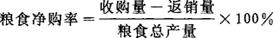 用百分数表示。净购指国家从农业生产者收购到的纯商品粮部分。不包括先收购、再返销给农村的粮食。其计算公式如下: