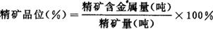 指精矿产品中所含金属量占精矿数量的百分比,它是反映精矿质量的指标。