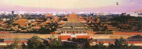 紫禁城位于北京市中心,现称为故宫,意为过去的皇宫。 它是明、清两代的皇宫,始建于明成祖永乐五年(1407年),经过14年的时间,于永乐十八年(1420年)落成。在前后500余年中,共有24位皇帝在这里生活居住和统治全国。 紫禁城是世界现存规模最大、建筑最雄伟、保存最完整的古代宫殿和古建筑群。它集中国古代建筑艺术之大成,是中国2000多年封建专制社会皇权思想的集中体现。紫禁城宫墙南北长961米,东西宽753米,周长3428米,占地面积72万多平方米,建筑面积约15万平方米,屋宇共9000多间。宫城平面略呈长方形,东、西、南、北面各有一座高大的城门,宫城四角各矗立一座精美的角楼,城墙外有宽52米的护城河环绕,形成一座宏大壮观,壁垒森严的城堡。 与中国历代皇宫一样,紫禁城的总体规划和建筑形制完全服从并体现了古代宗法礼制的要求,突出了至高无上的帝王权威。城内宫殿建筑布局沿中轴线向东西两侧展开。 全部宫殿分“外朝”和“内廷”两部分。外朝是皇帝办公的地方。举凡国家的重大活动和各种礼仪,都在外朝举行。外朝由天安门-端门-午门-太和殿-中和殿-保和殿组成的中轴线和中轴线两旁的殿阁廊庑组成;内廷是皇帝后妃生活的地方,由中轴线上的乾清宫、交泰殿、坤宁宫、御花园和两旁的东西六宫等宫殿群组成。  故宫全景 |