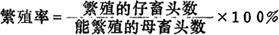 或:繁殖率=配种率(上年度)×受胎率(上年度)×产仔率(本年度)