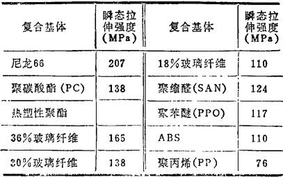 工程塑料经纤维加强后,其强度有明显提高,如图2.4-1所示。最常用的是玻璃纤维。用玻璃纤维加强塑料的机械性能见表2.4-7。 表2.4-7 玻璃纤维加强的热塑性塑料的瞬态拉伸强度  复合材料的性能,取决于基体与纤维的相对性能、基体与纤维的相对比例、纤维的长度以及纤维在基体中的几何排列形式四因素。基体可以是热塑性塑料,也可以是树脂、金属等。纤维除玻璃外,也可以是金属、碳、硼等。 使用复合材料时应注意两点。一是复合材料的各向异性非常明显,应将纤维方向顺应应力最大的方向,以得到材料的最有效利用。第二是复合材料虽有高的抗拉强度,但其刚度较差(碳、硼纤维复合材料例外)。例如,玻璃纤维的强度虽然与钢丝相近,但其弹性模量E值比钢的低得多,接近于铝的E值。所以,在设计中使用GFRP(玻璃纤维加强塑料)材料时,受约束的一般是其刚度,而不是其强度。几种纤维和部分复合材料的强度及刚度列于表2.4-8。 表2.4-8 几种纤维和复合材料的性能  注: ❶ GFRP是玻璃纤维加强塑料。 ❷ CFRP是碳纤维加强塑料。 |