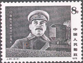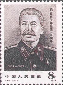 释义 | 约·维·斯大林诞生一百周年 发行日期:1979年12月21日 齿孔度数: 印刷版别:雕刻版 票幅:(1)30×40;(2)40×30 全张枚数:(1)50(10×5);(2)50(5×10) 设计者:任宇 雕刻者:孙鸿年、高品璋 印刷:北京邮票厂 (1)8分 斯大林像 750万枚 (2)8分 伟大的贡献 750万枚 (1)-(2) 2枚全 |