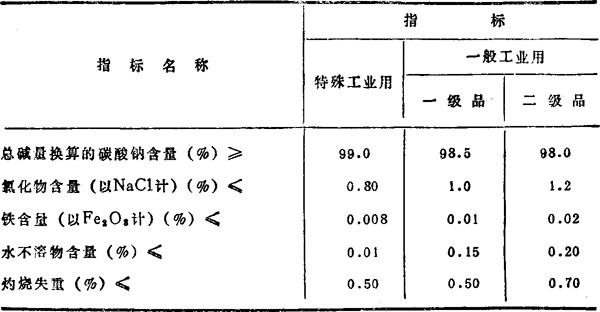 | 释义 | 纯碱(工业碳酸钠) 本产品是由氨碱法制得的纯碱。 1.质量标准 表1-4 纯碱质量标准(GB210-80)