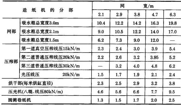 纸机的传动功率
