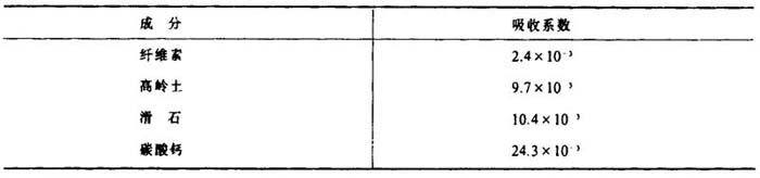 释义 | 纸页灰分自动测量仪的检测计算 [说明]连续测量纸机上纸页的灰分,可以得到符合印刷特性要求的纸页,并且可以最大限度地利用填料以降低纸页的成本。测量原理是利用惰性填料(高岭土或二氧化钛)来大量吸收穿过纸页的χ(伦琴)射线。 式中 I0——χ射线源强度 I——通过纸页后χ射线的强度 μ——χ射线在纸页中的吸收系数,见表2-6-2 χ——纸页的定量 χ2——纸页的灰分含量 μ1——纸浆中纤维对χ射线的吸收系数 μ2——灰分对χ射线的吸收系数 表4-6-2 各种成分的吸收系数(m2/g) |