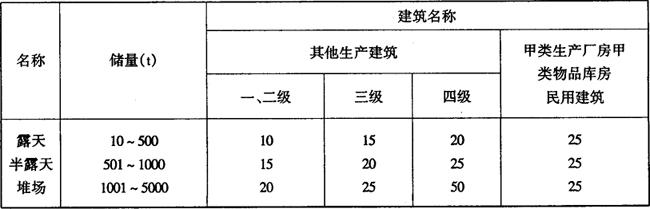 释义 | 纺织原料仓库的防火措施 (一)库区布置 纺织原料的专业仓库宜建在市区的边缘,并处在常年主导风向的上风向或侧风向,地势略高于周围地面,且靠近水源的地方;库区应用围墙等措施保护。生产单位的原料仓库也应建在厂区的常年主导风向的上风侧,并将库区与生产、生活区分开布置。 原料仓库的库房、露天和半露天堆场与室外变配电站之间的防火间距应符合表6-10-3的要求。 表6-10-3 库房、堆场与室外变配电站的防火距离(m) 原料仓库的库房、露天和半露天堆场与电力架空线的防火间距不应小于电杆高度的1.5倍。烟囱高度超过30m,其间距按烟囱高度计算。 如库区外的铁路线是电力牵引机的铁路线时,其防火间距可减少到20m。当采用库房储存时,库房与铁路、道路的防火间距也应符合相应要求。 原料的露天和半露天堆场与散发火花地点、铁路、公路、厂区内道路的防火间距见表6-10-4。 表6-10-4 堆场与散发火花地点、铁路、道路的防火间距(m) 原料的露天、半露天堆场与甲类生产厂房、甲类物品库房、其他生产建筑及民用建筑的防火间距应符合表6-10-5的要求。 表6-10-5 堆场与建筑物的防火间距(m) 原料的露天、半露天堆场与易燃液体贮罐的防火间距应符合表6-10-6的要求。 表6-10-6 堆场与易燃、可燃液体贮罐的防火间距(m) 原料库区内,严禁搭建易燃建筑。电瓶车充电室和机动车辆的油库,应设在库区外的安全地点。 (二)库房和堆垛的防火要求 1.储存纺织原料的库房的耐火等级、层数和面积应符合国家标准GBJ16-87《建规》的要求。当库房内装有自动灭火设备时,其占地面积可按表增加50%。 2.库房内储存原料应有一定限额,不能储存过高过满。堆垛之间应留出通道,以利检查、操作和通风,主要通道的宽度不小于2m,小通道不小于1.5m。垛距外墙不小于0.5m,距柱不小于0.2m。 库内堆垛,垛高距房梁不小于1m;平顶库房,距房顶不小于2m。 3.露天、半露天堆存原料时,总储量超过5000t时,宜分设堆场,堆场与堆场之间的防火间距不小于30m。 每垛底面积不超过100m2,垛高不宜超过6m。堆垛应分组布置,每组不超过6个垛,垛与垛之间的距离不小于6m,组与组之间不小于15m。垛与外墙不小于5m。 4.原料进库后,必须在安全地点停放24小时以上,经观察无异常现象之后,才能入库和堆垛。垛基要有垫基,防止受潮,堆顶要成屋脊形,并用苫布等封盖严密,防止雨水和飞火落入垛内,苫布等不能用铁丝等金属绑扎,以免雷击时产生感应电流。 5.仓库工作人员办公室和休息室一般不应设在库区内。如设在库区内,不得设在库房内,应单独建造。 (三)电源、火源的管理 1.库房内不得装设电源线和电器装置,不得架设临时线。库内照明采用投光灯采光。库内用电的电源应在库外安装插座,用橡套电缆引入库内,使用后应及时切断电源。电线上和插座、电闸下方不准堆放原料,使用的橡套电缆应不破损,并不得有接头。 2.库区电线一般应设地缆线,不宜设架空线。如暂时使用或采用架空线,应在库房和堆垛的外侧通过,架空线下禁止堆垛原料。 库区内,运输原料的通道上空,架空线必须离地面5m以上,吊柱、支撑要牢固,防止断线。 3.库区内的电气设备和线路应有专人负责,每周至少进行一次彻底检查,每年至少应进行二次绝缘摇测,发现可能引起打火、短路、发热和绝缘不良等情况,必须立即停止使用,经修复验收后再启用。电气设备和线路不准超负荷运行。 4.进入库区的蒸汽机车和内燃机车,必须安装防火罩。蒸汽机车要关闭灰箱和送风器,并不得在库区内清炉和停留。仓库要派人监护,直到机车驶离库区。 进入库区的汽车、拖拉机等,必须戴防火帽,排气管一侧不准靠近可燃物,停车后应立即熄火。 在库区工作的电瓶车、铲车、吊车等,必须有防止喷火或打出火花的安全措施。 5.由于捆扎原棉、化纤等原料都用铁皮、铁丝、铁箍等,与吊钩、手钩、水泥地面、垫垛的石垫等撞击和摩擦会产生火星,因此操作时,不能猛烈撞击或敲打,也不能在地面上拖拉。吊钩、手钩宜采用铜质或镀铜的,以防因摩擦和碰击产生火星。 6.原料库房应装避雷设备;露天堆场应设独立的避雷针,以防雷击起火。 7.库区内严格执行禁止吸烟、用火制度,如因工作需要,在离库区30m以内进行明火作业时,必须经保卫部门和仓库负责人审查批准,采取可靠的防范措施,并指派消防人员在场监护,作业结束后应彻底消除火种,经检查确保安全后,方可离开现场。 8.库房内不应安装采暖设备。 (四)原料储存中的其他防火要求 1.高温和雷雨季节,要对原料加强检查,发现问题,及时倒垛通风,阴雨天、雾天,除工作需要外,库房一般不宜开启门窗。 平时加强检测棉麻堆垛内的温度。要求垛内温度不超过38℃,水分不大于12%,如果温度上升到40~50℃,要采取预防措施,当温升到60~70℃时,必须拆垛散热,并做好灭火准备。 2.库区内地面应经常清扫,除掉各种纤维下脚、杂草及其他可燃物,以防一旦著火,延烧原料堆垛。 3.破损的原料包,不应直接堆在垛内,应包好后再入垛,或者将散包集中一起,单独妥善存放,以免发生火灾时加速蔓延。 4.库区内按规定应备有充足的水源和用水设备。每200m2的原料库,每150m2的露天堆垛,要配置灭火器2具,消防用水0.5吨,小水桶4个,以及消防铁钩、铁锹等。 装卸、堆垛、卸垛时,每个工作现场要配置一定数量的灭火器。 5.扑救棉麻