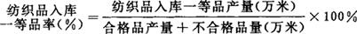 式中:合格品产量和不合格品量之和也称下机总产量;纺织品入库一等品产量是指纺织品下机修整后的一等品数量。
