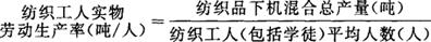 释义 | 纺织工人实物劳动生产率 纺织企业平均每个生产工人及学徒(或平均每个职工)在一定时间内生产产品的效率。 反映人们在生产中劳动效率的高低。提高劳动生产率就是用比较少的劳动,生产出尽可能多的优质产品。为企业加强劳动管理,提高经营水平,加快技术更新服务。 其计算公式为: 式中:纺织品下机混合总产量是指报告期生产并经检验符合质量标准或合同规定的技术要求的合格产品产量,不包括不合格品数量。 纺织生产工人指企业生产某种产品所占用的工人,包括该产品自原料往头道工序运送开始到成品包入库为止所占用的全部工人和学徒人数。 |