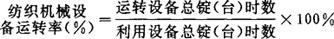 指运转设备锭(台)时数与利用设备锭(台)时数之比,用于反映设备运转潜力提高设备运转能力的效益指标。其计算公式为: