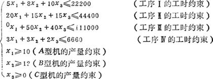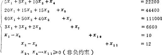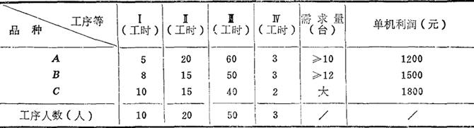 释义 | 线性规划决策案例 运用方法篇(七)的线性规划方法,可对多种问题进行经营决策。本案例系生产计划和组织问题的决策。生产计划的决策是解决在现有条件下,如何安排各种产品的产量,求得最佳的产品组合,以获得最大利润的问题;生产组合的决策是根据在线性规划的优化过程中所发现的薄弱环节,采取相应措施,使潜力更充分发挥,以获得更大利润的问题。 〔例〕某企业生产的一种电子仪器有三个品种,生产过程的四道工序的现有工人数及所耗工时等数据如下表所示,试用线性规划进行决策。 解题步骤如下: 首先,根据工时利用率(95%),算出各工序的全年工时总数hj,即,h1=10人×183时/月。人×12月/年=2.2万时/年,同理得h2=4.4万时/年,h3=11万时/年,h4=0.66万时/年。这就是工时约束条件。 接下来,设在最大效益Pmax时,三个品种的最佳产量分别为X1、X2和X3。则根据已知数据可建立目标函数模型为: MaxP=1200x1+1500x2+1800x3 此时应满足下列约束条件,即 最后,将上面模型及数据输入计算机运算,可得各品种产量指标分别为x1=10,x2=12,x3=2206。此时的Pmax=400万元。 如果用手工运算,需用单纯型的大M法(两阶段法),先将原线性规划模型变成标准型,然后在运算表中通过三次迭代,亦可得到相同的产量数值。再将各品种产量代入目标函数式求得Pmax值。变换成标准型后的线性规划式如下(运算过程略): 目标函数为 MoxP=1200x1+1500x2+1800x3+0·x4+0·x5+0·x8+0·x7+0·x8+0·x9-Mx10-Mx11 满足的约束条件为 式中的x4~x11就是为了使各方程变成等式而附加的变量,通常可以理解为未被利用、尚未转化为价值的那部分资源,在目标函数中,它们的系数为0,所以不会影响决策值。 最后,分析线性规划的结果发现,它是在现行生产组织下的较优方案,而并不是最优方案。因为除工序Ⅰ外,其他工序尚余有工时没充分利用,说明需调整劳动组织。因此适当增加该生产线工人数,再用线性规划分析运算后证明,仅在前两道工序各增加2名工人就可使畅销的C型机增产,获得的Pmax增加到480万元。即工人总数只增加4.8%,而利润却能上升20%。可见线性规划的效益是很显著的。 本例的分析的人工约束条件,还可分析材料消耗的约束。例如一家化工厂的两个品种生产中,原材料通过七道工序变化,则以每道工序的材料消耗定额和生产能力为约束条件,用线性规划求得两个品种在最大利润时的产量计划指标,使年利润从130万元上升到191万元。后又根据在分析中发现的薄弱环节,对两道工序进行技术改造,以扩大它们的生产能力,使产品增产880吨,利润又上升到300万元。 |