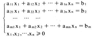 由决策变量、约束条件、目标函数构成的描述线性规划问题的数学模型。 其标准形式为:求一组决策变量x1,x2,…,xn的值,满足约束条件:  使目标函数 Z=C1Xi+C2X2++CnXn→最大 其中:aij,bi,ci(1=1,2,…,m;j=1,2,…,n)是给定的参数。an为决策变量的约束条件系数,ci为决策变量的目标函数系数,bi为常数项,始终要求bi≥0,即满足可行状况。 由实际问题抽象得到的模型不一定是标准形式。 化标准形式的方法有:(1)在约束线性不等式的左端加入(如约束不等式为<)或减去(如约束不等式为>的辅助变量xn+1,化不等式为等式,辅助变量在目标函数中的系数cn+1规定为0,使之不影响最优解;(2)如果对某一变量xj(1, ,令 ,代入约束方程及目标函数中,化全部变量为非负约束,(3)如果某个常数项bi(1*=-Z的最大值。 用单纯型法求解线性规划问题,必须先将数学模型由非标准形式化为标准形式。 |
