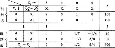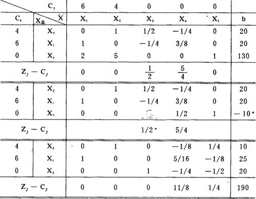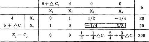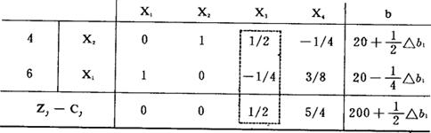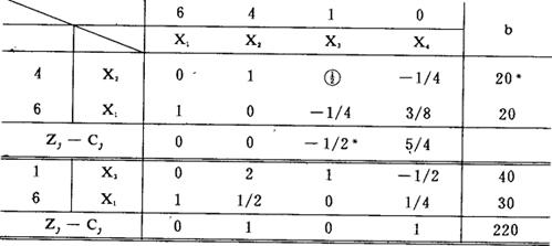 释义 | 线性规划灵敏性分析 指线性规划模型中各类参数对最优解的影响分析。 具体地讲,是研究模型中目标函数系数cj、资源数(右边常数)bi及技术系数aij发生变化时,最优解将受到什么影响,某个参数变动多大范围才会使最优解变化,最优解对哪些参数反应灵敏等。了解这些情况,作出分析,能使管理者具有更大的主动性。 这里通过一个例子,说明一些简单的灵敏分析方法。 某厂拟生产甲、乙两种产品,主要消耗A、B两种原料。 生产单位甲产品需A原料2吨,B原料4吨;生产单位乙产品需A原料3吨,B原料2吨。目前,该厂有A原料100吨,B原料120吨。又知生产单位甲产品可获利润6千元,单位乙产品一件可获利润4千元。问如何安排生产,能获得最大利润? 用线性规划模型求解,设生产甲产品X1单位,生产乙产品X2单位,建立模型 引入松弛变量X3,X4(分别表示A、B原料的剩余量)后,模型化为标准型: 用单纯形法求解: 结果表明:生产甲产品,乙产品各20单位,获利最大,为200(千元),这种方案A、B两种原料均用尽。 (1)目标函数系数Cj变化对解的影响 这里又分为两种情况: ❶ 基变量系数Cj变化 设甲产品单位利润C1发生变化,变化量为ΔC1,这个变化量在什么范围内最优解仍维持不变,可通过最终单纯形表计算出。 在最终表中,由基变量X1所在行,将非基变量所对应元素(表中虚线框元素)分别乘以ΔC1,加到它们的检验数上,得到变化后的非基变量检验数: 保持检验数Zj-Cj≥0,则最优解不变 即令 ![]() ![]() ![]() ![]() 如果甲产品单位利润变化超出了上述范围,可利用检验数变化了的最终表继续迭代,求出新的最优解。 ❷ 非基变量系数Cj变化 设x3目标系数变化,变化量为ΔC3,此时只影响X3在最终表的检验数,将最终表X3的检验数减去ΔC3,同时保证≥0,即可得到使最优解不变的系数变化范围。 说明C3的变化不超过 例如,假设A原料若剩余1吨,可通过对外处理获1千元利润,讨论原计划方案是否变化。 这里ΔC3=1(原C1=0),超过了上述范围,计划要改变,续检验数变化后的最终表用单纯形法继续迭代: 新的最优方案为,生产甲产品30件,乙产品不生产,A原料有40吨可对外处理,B原料用尽,这样可获利润220(千元)。通过分析,当C2变化后,找到了调整的最优方案。 (2)资源数(右边常数)bi变化对解的影响 设A原料数量发生了变化,变化量为Δb1。资源发生这个变化后对最优解的影响,可以从最终单纯形表直接得到。 在最终表中,找到变化资源的松弛型量(本问题A原料的松弛变量为X3),将该变量在最终表的那一列元素(表中虚线框元素)分别乘以Δb1,加到对应的b列元素上,即得到变化后的解: 例如,若A原料增加了4吨(即Δb1=4),则新的最优解为: 说明,若A增加4吨后,应调整计划,甲产品生产19单位,乙产品生产22单位,可获利润202千元。 只要变化后的解是非负数,则这样得到的解就是新的最优解。欲求出使最优基不变(即品种安排不变)的资源变化范围,只要保证变化后的解≥0即可求出。 说明A原料在增加80吨和减少40吨(或说A原料拥有量在60~180吨)范围内,上述最终表仍作为最优表不变。对应这个具体问题,说明都应组织两种产品的生产。 (3)技术系数a1j变化对解的影响。 这里仅介绍最简单情况,aij数目增多,即技术系数矩阵扩大的情况。对应有下面两种情况的经济分析。 ❶ 增加新的约束条件对解的影响 设再考虑C原料:生产这两种产品不得超过150吨,单位甲、乙产品分别耗用C原料2吨和5吨。可列出新增的约束方程: 2X1+5X2≤150 将原来的最优解X1*=20,X2*=20代入: 2×20+5×20≤150 不等式成立。 故新增约束条件不影响最优解,仍按原方案生产。 若代入新的约束条件,不等式不成立,说明影响最优解。则可将新增约束条件加入松弛变量,用对偶单纯形法继续运算,得到新的最优解。 如C原料可用量只有130吨,原最优解代入不满足约束不等式。重新找最优解,引入松弛变量X5: 2X1+5X2+X5=130 加入原最优单纯形表,得到 ❷ 增加新决策变量 可对应于新产品开发问题。设该厂考虑增加新产品丙,单位丙产品消耗A原料3吨,B原料6吨,单位利润8千元,新产品是否应当生产? 用变量X6表示新增产品丙,根据检验数的经济含义,用新增产品对A、B原料的耗用量分别乘以A、B原料影子价格(即A、B资源松弛变量检验数),用它们的和减去新增产品单位利润,得到新增产品x6在原问题最终单纯形表中检验数: 说明新增变量不影响原最终单纯形表最优性,即对最优解无影响,不予考虑新产品的投产。 若这样计算出的检验数小于零,说明破坏了原解的最优性,应考虑新产品的投产。具体的最优计划,可通过增加了一列元素的原最终单纯形表继续迭代得到。 〔参〕“求解线性规划单纯形法”,“对偶单纯形法” |