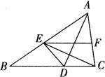 释义 | 线段垂直平分线的性质 线段垂直平分线上的点到这条线段两个端点的距离相等. 注意 用几何语言描述如下: 如图:因为l是AB的中垂线,且P点在l上. 所以PA=PB. 例1 如图,在等边△ABC中,∠B和∠C的平分线相交于O,BO、OC的垂直平分线分别交BC于E和F,请说明:BE=EF=FC. 证明:连接OE、OF. ∵E、F分别是BO、OC的垂直平分线上的点, ∴OE=EB,OF=FC. 又∵△ABC是等边三角形,且OB、OC分别平分∠B、∠C, 故∠OBE=∠BOE=30°, ∠OCF=∠COF=30°, 可得∠BEO、∠CFO均为120°, ∴∠OEF=∠OFE=60°. ∴△OEF是等边三角形, ∴BE=OE=OF=EF=FC. ∴BE=EF=FC. [解析] 用线段垂直平分线可以证明线段相等. 例2 如图,AD是△ABC中∠BAC的平分线,AE=AC,EF∥BC,请说明:∠FEC=∠DEC. 证明:∵AE=AC,AD是∠A的平分线. ∴AD是EC的垂直平分线. ∵D是EC的垂直平分线上的点, ∴DE=DC,∴∠DCE=∠DEC. ∵EF∥BC, ∴∠FEC=∠ECD, ∴∠FEC=∠DEC. [解析] 用线段垂直平分线的性质可以证明角相等. 例3 如图,AD⊥BC于D,∠B=2∠C,请证明:AB+BD=DC. 证明:在DC上截取DE=BD,连结AE. ∵AD⊥BC,DE=BD, ∴AD是BE的垂直平分线. ∵点A在AD上, ∴AB=AE,∠1=∠B. ∵∠1是△AEC的外角, ∴∠1=∠2+∠C. 又∵∠B=2∠C, ∴∠2+∠C=2∠C. ∴∠2=∠C. ∴AE=CE. ∵CE+DE=DC, ∴AB+BD=DC. [解析] 用线段垂直平分线性质可以证明线段之间的和、差关系. 例4 如图,△ABC中,AB=AC,DE垂直平分AB,AB+BC=10cm,则△DBC的周长=__cm. 解 ∵DE垂直平分AB, ∴AD=DB. △DBC的周长=DB+DC+BC =AD+DC+BC =AC+BC =AB+BC =10(cm). [解析] 用线段垂直平分线可以求线段长. 例5 如图,AC⊥BD,DF是AB的垂直平分线,EC=EF,求∠A的度数. 解 连结BE. ∵AC⊥BD,DF⊥AB,且EC=EF, ∴BE是∠ABC的平分线. ∴∠1=∠2. 又∵DF是AB的垂直平分线, ∴EA=EB.∴∠1=∠A. 在Rt△ABC中,∠A+∠ABC=90°. 即∠A+∠1+∠2=90°. ∴3∠A=90°, ∴∠A=30°. [解析] 用线段垂直平分线可以求角度 例6 公路MN的一边有A、B两个工厂,他们准备在公路MN的旁边合建一座仓库P,要求到两厂的距离相等.请你在图上把点P找出来. 解法 [解析] ❶ 作AB的中垂线与MN交于P点. ❷ 用线段垂直平分线性质可以解决实际问题. |