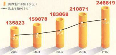 2003~2007年国内生产总值及其增长速度