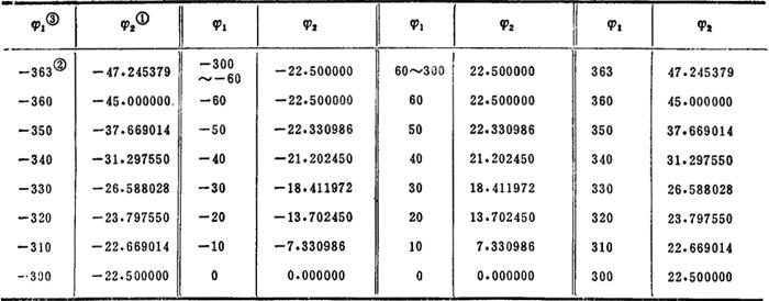 释义 | 结构设计要求和设计示例 为实现蜗形凸轮与滚子工作表面的正确啮合,结构设计应满足下列要求: ❶ 机架(箱壳)轴孔以及有关零件的形位公差应保证蜗形凸轮轴线与滚子盘轴线间的确准相对位置。 ❷ 蜗形凸轮轴线应处在各滚子轴线所共的平面内。为此,滚子盘宜设计成可进行轴向位置调整的结构。 ❸ 蜗形凸轮的轴向位置也应能够调整,以便使滚子盘轴线位于凸轮定位环面的对称平面内。 ❹ 中心距也应可调,以便消除滚子与凸轮工作表面间的配合间隙并稍加预紧。 图5.12-3中,蜗形凸轮2的轴向位置用两端的螺母1调整;中心距由垫片3调整;滚子盘的轴向位置调整由轴承实现(图中未画出)。 1-螺母;2-蜗形凸轮:3-调整垫;4-滚子盘;5-滚子 蜗形凸轮与滚子的常用材料及热处理参见第六章表5.6-38。 例5.12-1 试设计一蜗形凸轮分度定位机构。已知:依照工艺要求,确定分度数为8,动停比为1/2;按设备的总体布置,确定中心距a为160mm。 按表5.12-1计算结构参数及尺寸如下: ❶ 滚子数与分度数相等,故:z=8。 ❷ 滚子盘分度角:2Φ2=360°/z=360°/8=45° ❸ 凸轮分度角:因已知k=0.5,故: 图5.12-8 的附表(°) 注: ❷ φ1=±363°时,φ2≈±(2Φ2+θ)(已取θ=2°)。 ❸ φ1的间隔依加工要求及条件而定,一般不大于(1°~0.1°)。 |