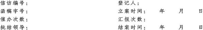 【简介】: 结案登记是人民代表大会机关信访文书的一种,是指人民代表大会机关信访部门用于记载来访信件所反映的问题立案处理情况的记录表,是人民代表大会机关信访档案的重要组成部分,是总结人民代表大会机关信访工作的基础和依据。其内容包括:信访编号及函稿字号、登记人姓名、立案时间、催办次数、汇报次数、批准结案的领导人姓名、结案时间。信访编号是人民代表大会机关信访部门对来访信件的编号,包括来访日期;函稿字号是人民代表大会机关信访部门发出要求处理来访信件反映的问题的信访公函的编号及日期;立案时间是信访部门决定将立案交有关部门处理的时间;催办次数是人大机关信访部门在发出信访公函的一定时间内要求负责处理问题的部门汇报情况而未能得到汇报时再次发出催办函的次数;汇报次数是指人民代表大会机关信访部门指定处理来访信件所反映的问题的部门向人民代表大会机关信访部门汇报处理工作进展情况次数。 【范例】: 结案登记