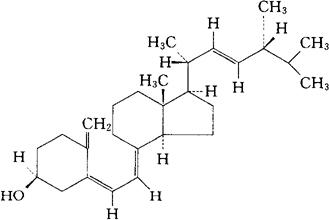 C28H44O=396.66 CAS-50-14-6 9,10-开键麦角甾-5,7,10(19),22-四烯-3-醇(3β,5Z,7E,22E)。 9,10-Secoergosta-5,7,10(19),22-tetraen-3-ol(3β,5Z,7E,22E). 维生素类药。促进肠内钙磷的吸收,促进骨质钙化。用于佝偻病、骨软化症及甲状腺功能低下等。 麦角骨化醇,骨化醇,维生素丁2,第二钙化醇(台)。 Vitamin D2,Ergocalciferol,Oleovitamin D2,Calciferol.Deltalin,Drisdol. 维生素D2片,维生素D2胶囊,维生素D2丸,维生素D2注射液,第二钙化醇胶囊(台)。 INN,BP,DCIT,EP,FP,GDP,JP,NFN,USAN,USP,USSRP,MI.  |