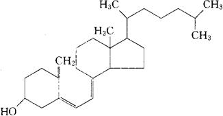 释义 | 维生素D3[典] C27H44O=384.64 CAS-67-97-0 9,10-开键胆甾-5,7,10(19)-三烯-3-醇(3β,5Z,7E)。 9,10-Secocholesta-5,7,10(19)-trien-3-ol(3β,5Z,7E). 维生素类药。促进肠内钙磷的吸收,促进骨质钙化。 用于佝偻病、骨软化症及甲状腺功能低下等。 胆甾骨化醇,胆维丁,活化-7-去氢胆固醇,第三钙化醇(台)。 Vitamin D3,Cholecalciferol,Oleovitamin D3 Activated. 维生素D3注射液。 INN,BAN,BP,DCF,DCIT,EP,GDP,JP,USAN,USP,MI. |