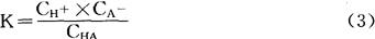 释义 | 缓冲容量 缓冲容量(Buffer Capacity)是溶液改变单位pH时所需的强碱(酸)的量,可用来衡量溶液缓冲作用的强弱。 缓冲容量 在有效的缓冲作用范围内,缓冲容量几乎只用式(1)中括号内第一项来确定。所以 式中a为游离酸和它的盐的总浓度即a=CHA+CA-, 为求得缓冲溶液具有最大缓冲容量的条件,可把式(2)对pH微分,并令所得结果为零,解得K=CH+,从式(3)可知,此时CHA=CA-,即溶液中含有相等浓度的弱酸及其盐时,缓冲β最大。 这一结论同样适用于由弱硷及其盐组成的溶液。 |