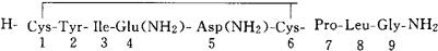 C43H66N12O12S2=1007.19 CAS-50-56-6 L-半胱氨酰-L-酪氨酰-L-异亮氨酰-L-谷氨酰胺酰-L-天冬酰胺酰-L-半胱氨酰-L-脯氨酰-L-亮氨酰甘氨酰胺环(1→6)二硫化物。 L-Cysteinyl-L-tyrosyl-L-isoleeucyl-L-glutaminyl-Lasparaginyl-L-cysteinyl-L-prolyl-L-leucylglycinamidecyclic(1→6)disulfide. 子宫收缩药,催产药。用于引产催产及各种原因的子宫出血。 催产素,合成催产素。 Oxytocin,Pitocin,Syntocinon,Uteracon,Partocon,Synpitan. 缩宫素注射液。 INN,BAN,BP,EP,IP,JP,USAN,MI.  |