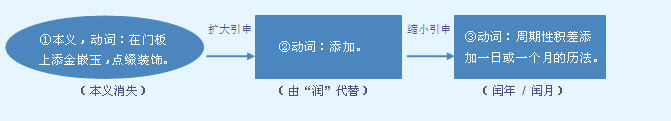 字源解说 门,既是声旁也是形旁,表示门板。闰,篆文 = (门)+ (王,玉),表示门板上的玉饰。造字本义:在门板上添金嵌玉,精细修饰。 附 文言版《説文解字》:閏,餘分之月,五歲再閏,告朔之禮,天子居宗廟,閏月居門中。从王在門中。《周禮》曰:“閏月,王居門中,終月也。” 附 白话版《说文解字》:闰,闰月,由一年十二月划分之后余下的时日组成的月份,五年闰两次。每月初一行告祭礼时时,天子居于庙堂之中,而轮闰月天子则居正室门中。字形采用“门、王”会义,表示王居门中。《周礼》上说:“闰月时,王居门中,持续一整个月。” 引申线索